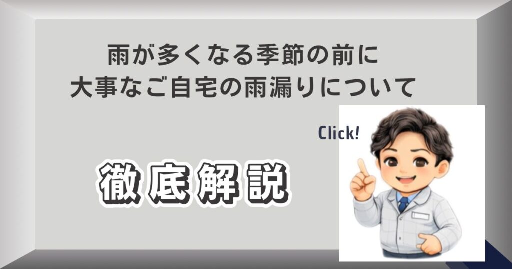 梅雨はまだ先ですが、これからの時期は雨漏りのご相談が増えてきます。