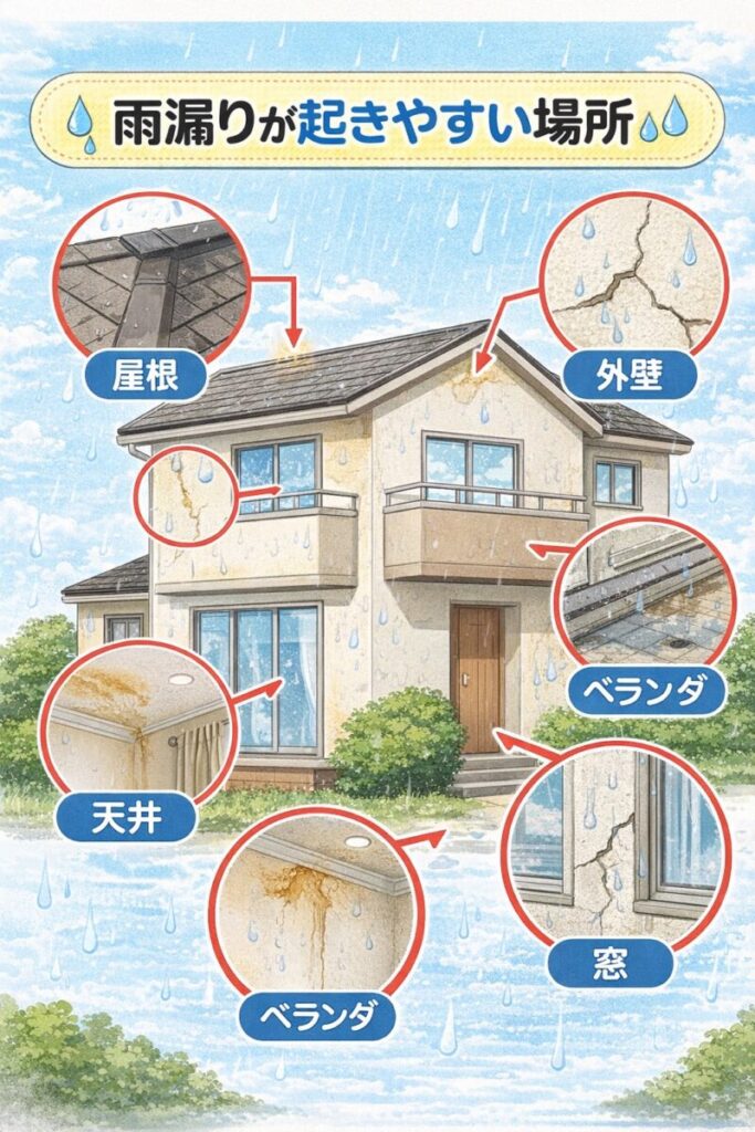 雨漏りの原因やサイン、対処方法についてご紹介します。
