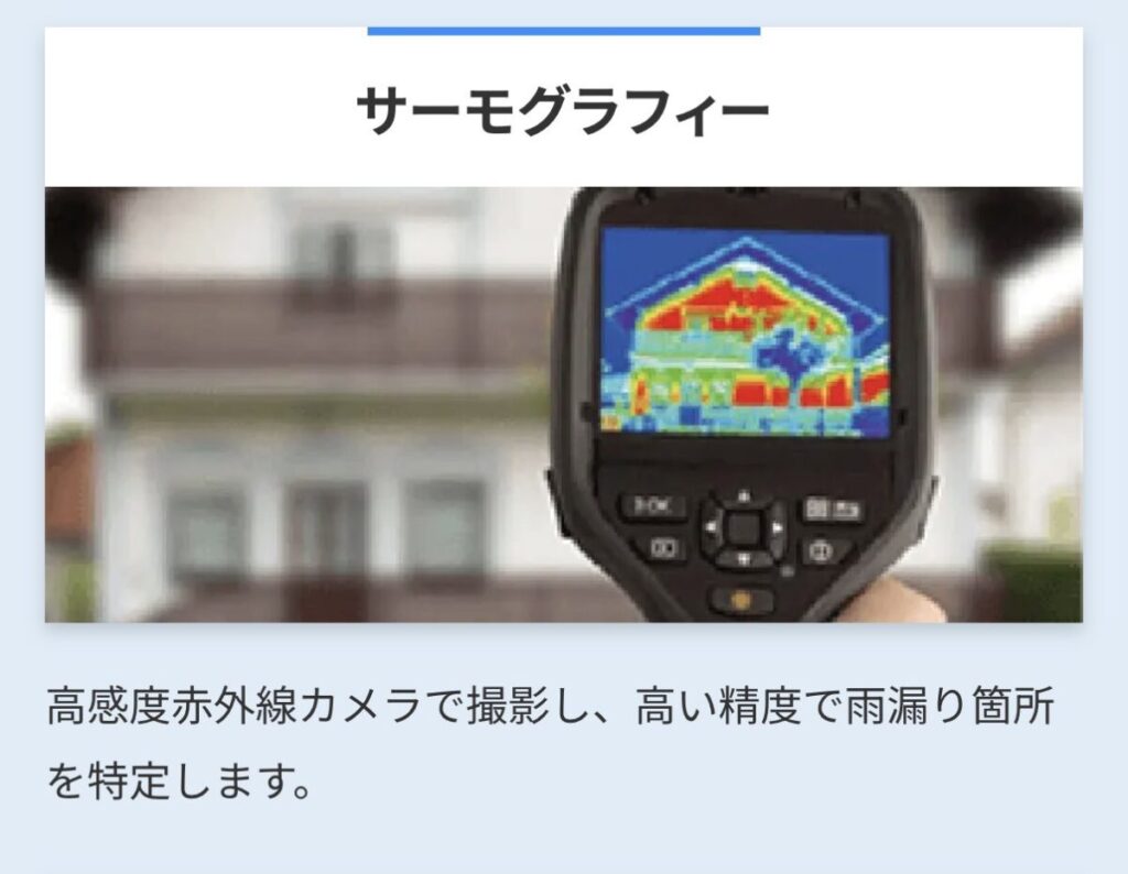 最新の赤外線カメラを使い、目に見えない温度変化から、壁の内部を通る水の道を特定。